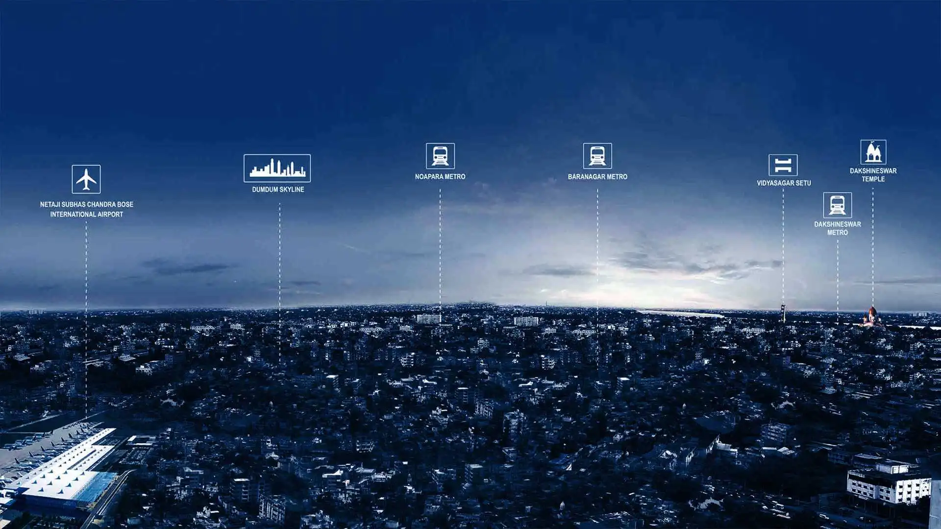 Airport Skycity overlooks the Skyline view of Dakshineswar temple and River Ganga and has been designed to bring the epitome of urban living, in the heart of one of the city’s finest neighbourhoods. Experience the resplendent sky views from the elite residential tower with contemporary luxuries and a 10000 sq. Ft. Commercial area within the premises.